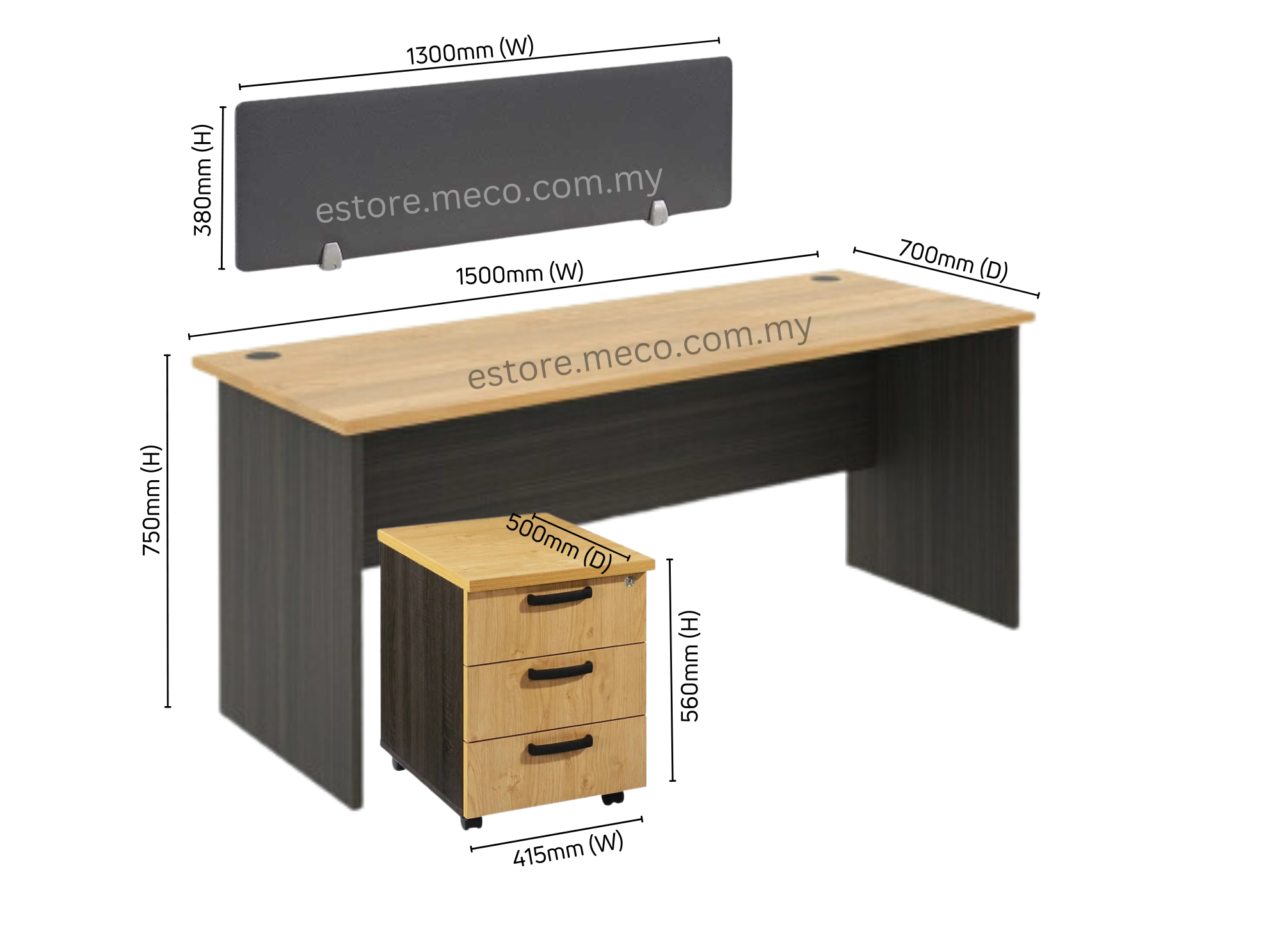 1500W x 700D x 750H mm