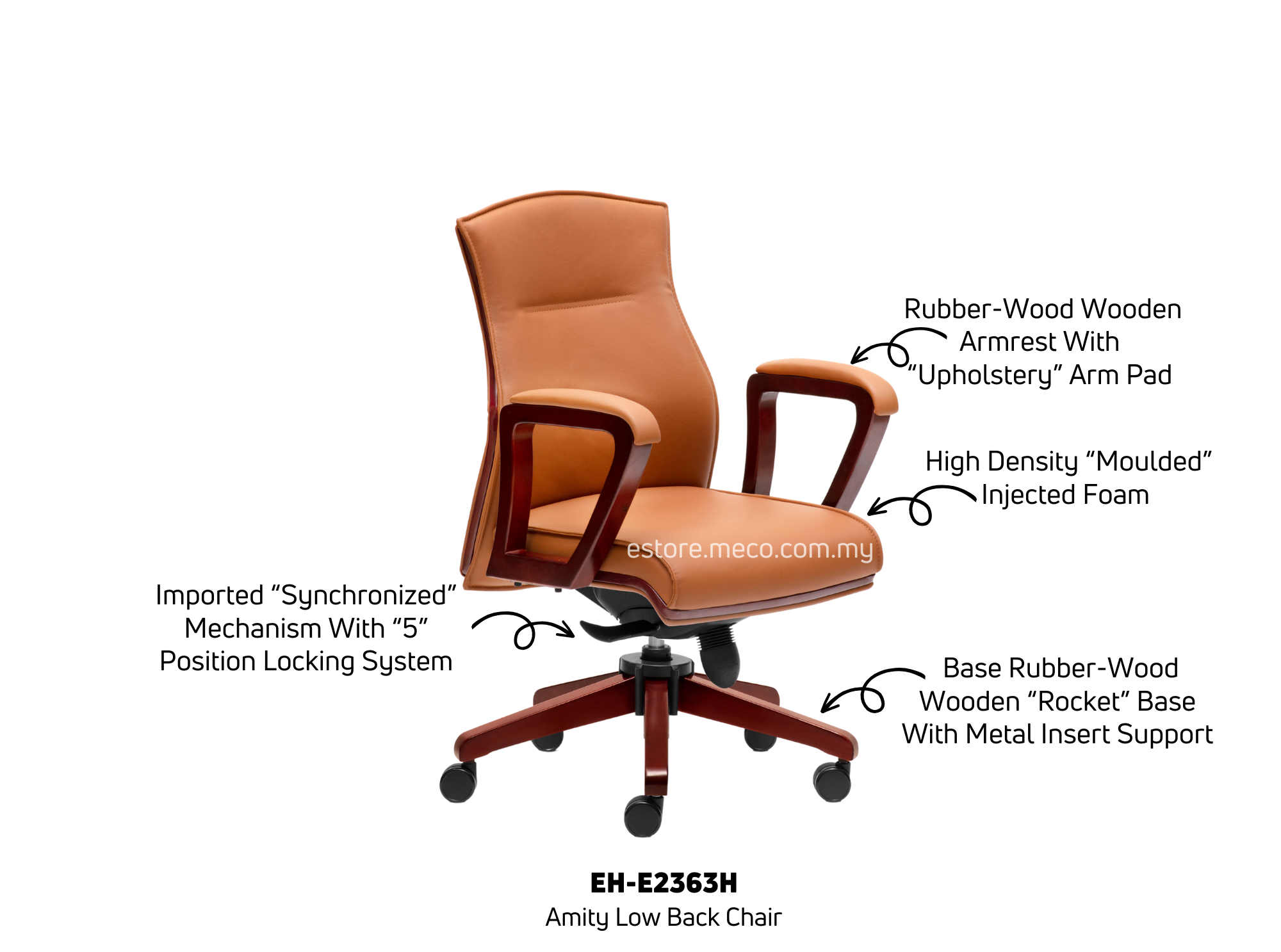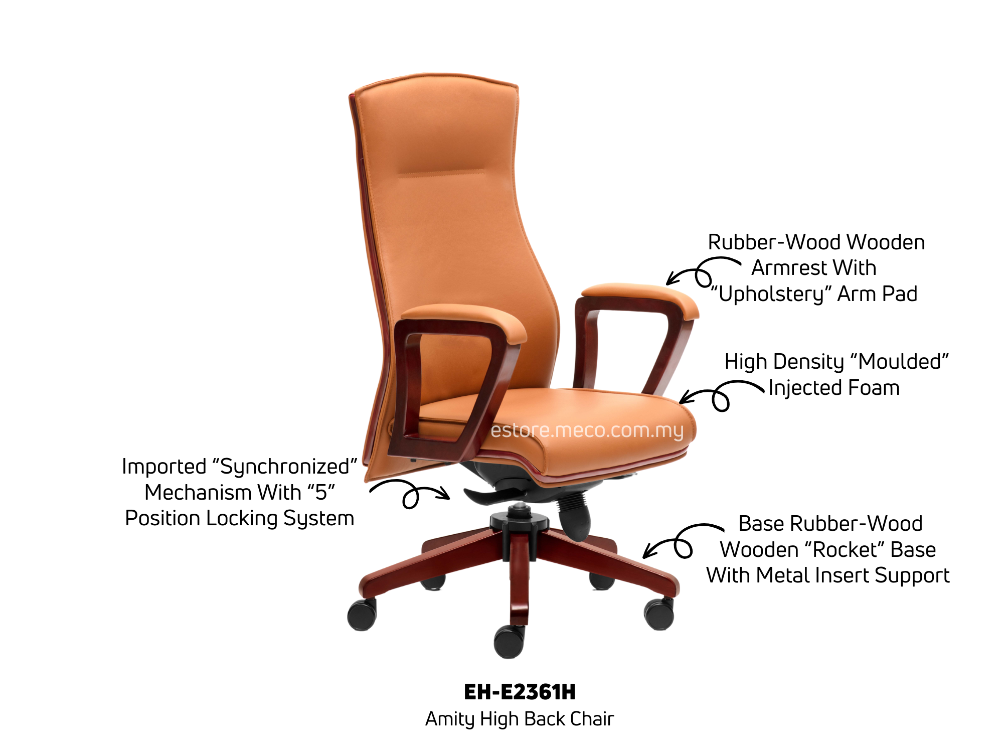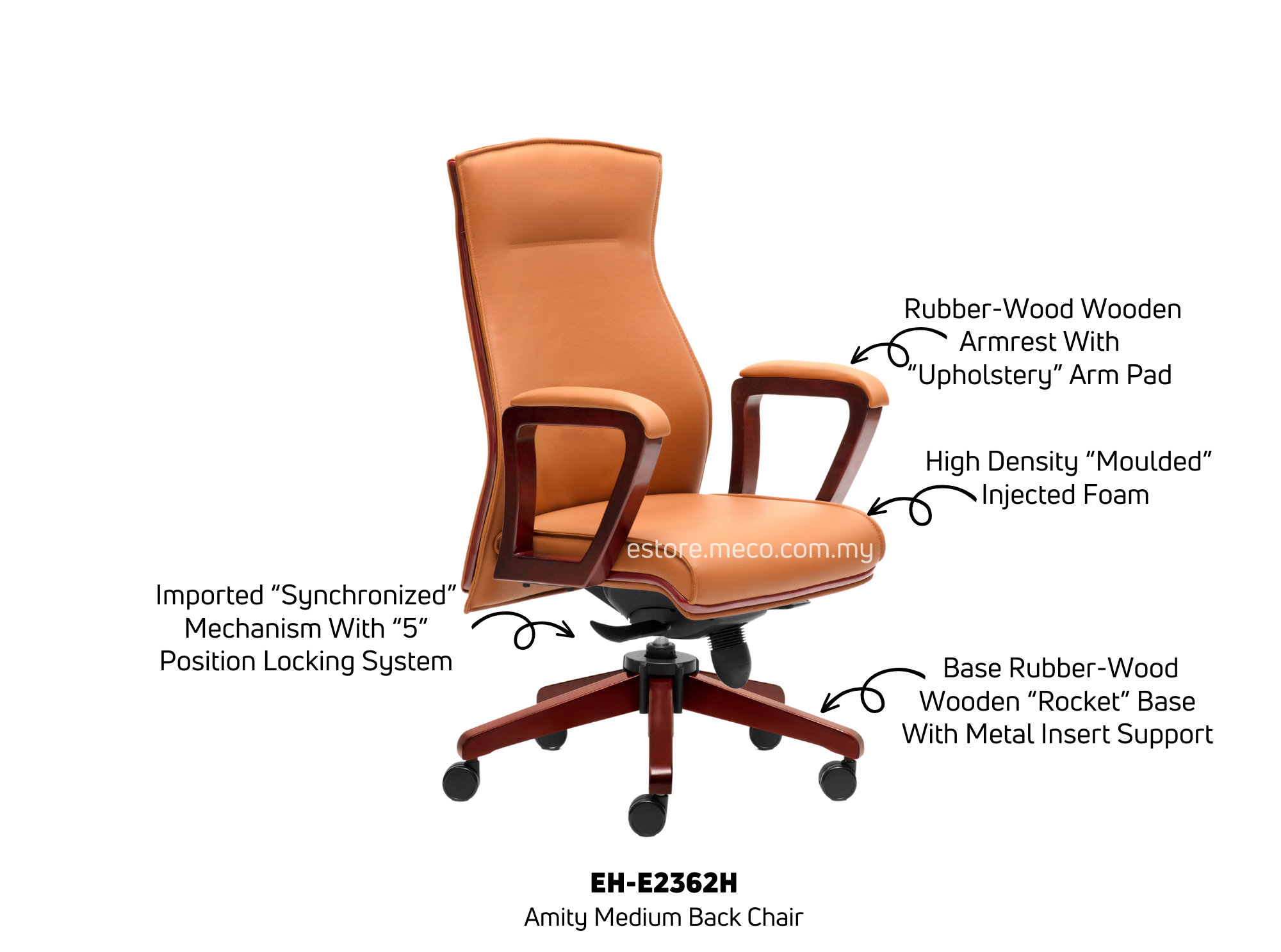 Armrest : Rubber-wood wooden armrest with “Upholstery” arm pad